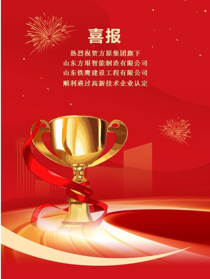 熱烈祝賀方原集團(tuán)旗下山東方垠智能制造有限公司和山東鐵鷹建設(shè)工程有限公司順利通過 高 新 技 術(shù) 企 業(yè) 認(rèn)定